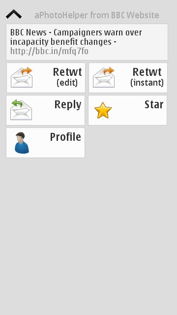 To actually do anything with a tweet, you have to tap through into a single page view. Other Twitter clients utilise drop down menus or long press menus. Having to go through to this single page view isn't a bad thing, as it affords space for large finger friendly buttons. Speaking of which, there are up to six buttons, allowing you to: