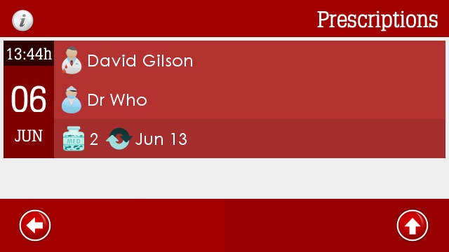 Going back to the main page of Medica, you get a summary of all prescriptions, but only one is expanded at a time, which shows you when the next prescription is due, when the follow-up date is, patient and doctor name, along with how many medications are attached.