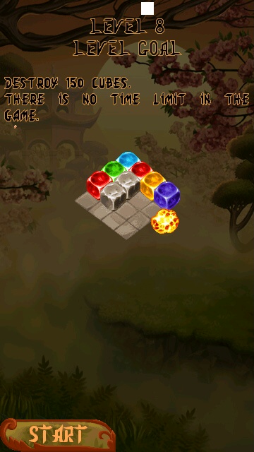 In addition, there are five single player modes. Story mode gives a narrated story between two characters (a dragon and a goddess), and in each level you can collect gold from special blocks, which in turn enables you to buy more special blocks with which to do all manner of tricks. Next along is Classic, which has no time limit, and just requires you to destroy a set number of blocks. Arcade mode is the same as Classic, but with a time limit. Puzzle mode asks you to destroy a set number of blocks without a time limit, but the initial configuration of blocks is highly complex and elaborate, making it difficult to solve - hence the name! Finally, Infinity mode is a survival type game. There is no target number, you just have to keep destroying blocks for as long as you can without filling up the grid and hence having no remaining moves left.