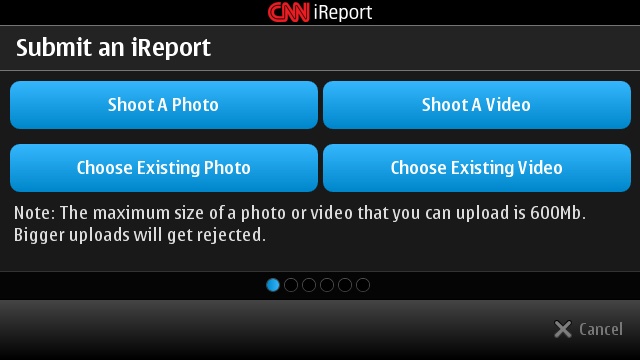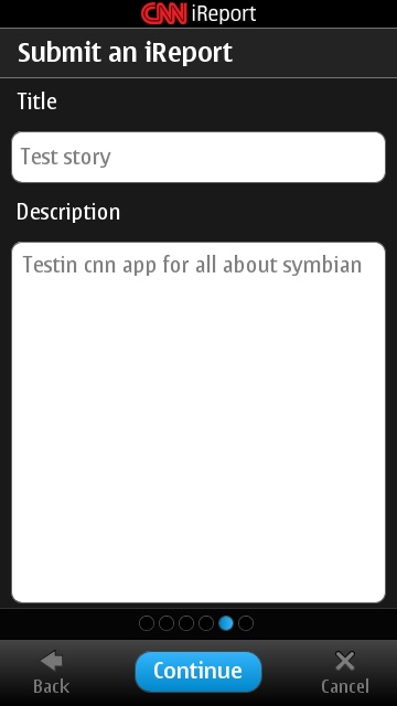 The first step in story submission is selecting or creating a photo or video. You then select which assignment you’re submitting to, and finally enter a title and type your story. You’ll find the current version (1.3) is a little out of date as it does not support Symbian Anna’s split screen keyboard, so navigating large bodies of text will be tricky. Instead, I suggest you type descriptions in another application, such as Notes, and then paste into CNN.