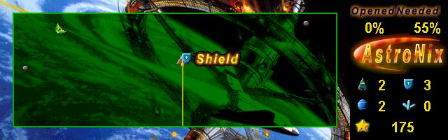 Mother Earth provides you with a spaceship to prevent the disaster. You have to release every sector of the galaxy from asteroids by fettering them in a force field. During the campaign you may visit shops to buy the necessary equipment like shields, freeze bombs, traps and new ships. But watch out! Don't be lavish with the precious goods - you will need them in the next level!