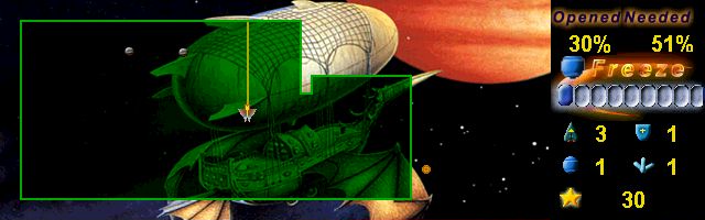 Astronix has the same kind of gameplay but it has been put in a cool new advanced jacket. The square is now a forcefield that holds your enemies bouncing inside them. Your mission is to truncate this forcefield in every sector until you have achieved the truncate level of that sector (i.e. you have to clear 51% in sector 1).
