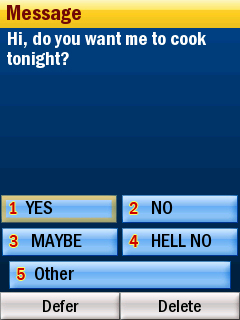 There are a few other features on this page. One is Messages, which the web user can type out and send. The web user also decides which responses can be made, from a choice of up to 4. I’m not convinced of the usefulness of this, as on the phone the new message appears as an icon. You have to press 4 on the keypad to bring it up, and another number to choose which response to send. Or you can ignore it, delete it or send back a custom response. It’s meant to be a very quick and easy way of replying, but since (legally) you're going to have to pull over to operate the phone and read it anyway, its use is limited. It is obviously a different story if you are travelling with a passenger.