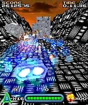 Graphics aside, the gamplay is pretty smooth. There's a consistent frame rate, even on early S60 devices like the N-Gage, and you can happily throw your craft around the screen. Up and down controls act as a throttle - you'll move further into the screen (with the camera angle pulling back a touch as well) so you'll progress through the level faster, but you'll have less distance (and therefore reaction time), to avoid the obstacles. It is nice to not be limited to one speed, and depending on my mood, slow and easy is one way - banzai running is another.