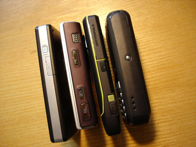 Comparing devices thickness: M600, N95, Z8 and Sendo X (left) and Banana and Z8 (right).