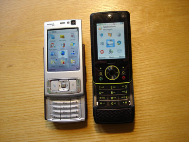 The Z8 compared against the Nokia N95 (right) and Sony Ericsson M600i (left).