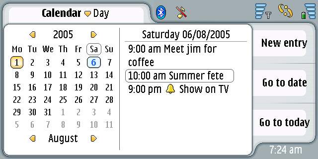 Calendar is much as it is on the 9500, with day/month and week views