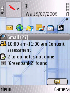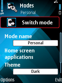 The layout is customised using the Modes application, accessible from Settings or as an application in its own right in the Tools folder. You can customise the theme and the wallpaper in each mode, which is helpful for giving a clear visual differentiation (think of a theme with the company logo versus a personalised theme), but the real value is in customising the application shortcuts and home screen plug-ins (enabled applications). For example, with application shortcuts you might choose to show those applications which you use most in the 'business versus personal' context (e.g. File manager for business, Music player for personal). Similarly, with the home screen plug-ins you can opt to enable only those which are most relevant to the current mode; this helps the home screen from becoming too cluttered and is something I'd like to see on all S60 devices.