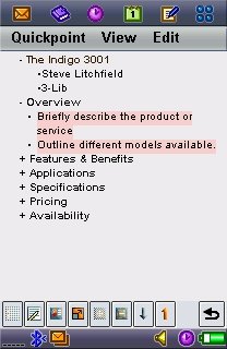 Quickpoint is another very strong element of the suite. The support for editing of slides on the move is a real boon, although round tripping of the more complex slides seems a bit hit and miss. However there is support for driving a presentation from the phone via Bluetooth which is very impressive (although not something I was able to test personally).