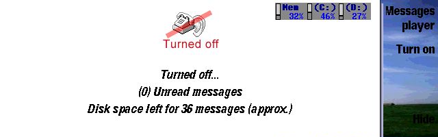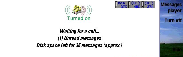 Enough talk now, let's check the action, we can reach the answering machine display in 3 ways. We can use the pop-up answering machine functions in the message player app, switch to the configured profile or use the shortcut key. The answering machine app is very small and straight forward. It displays the status of the answering machine (on/off) and the number of messages which can still be recorded on the remaining disk space.
