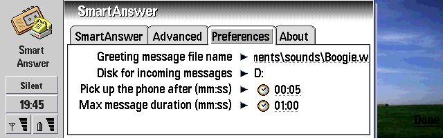SmartAnswer is a combination of 2 little apps; the smallest of them is the actual answering machine, where the other is the main app(messages player) where we can setup our answering machine and listen to our recorded messages.