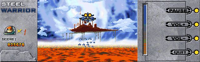 The third type, level defenders/bosses appear at the end of every level (except Stage 3) to make your life a living hell. Most of them use a combination of Kamikaze objects and mortar's to defend their selves. When you face one of these you'll notice a health indicator above the enemy so you know how much longer you need to hold on.